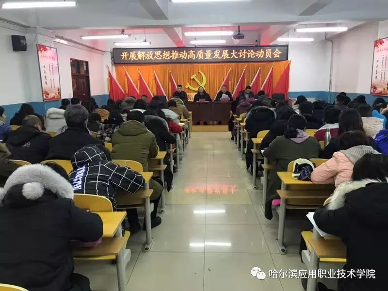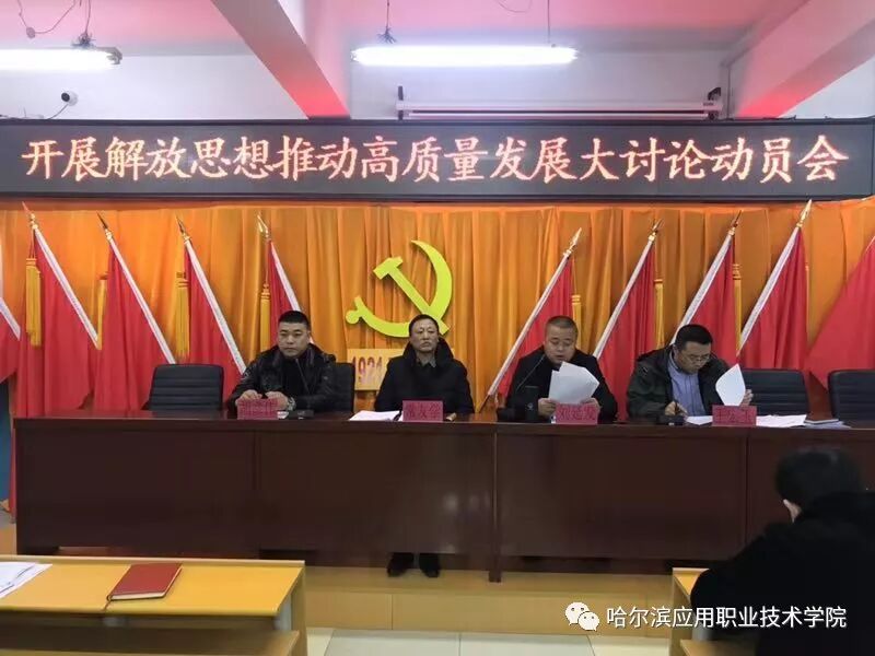 会上,学院党委副书记、院长刘延发宣布了《哈尔滨应用职业技术学院开展解放思想推动高质量发展大讨论实施方案》。