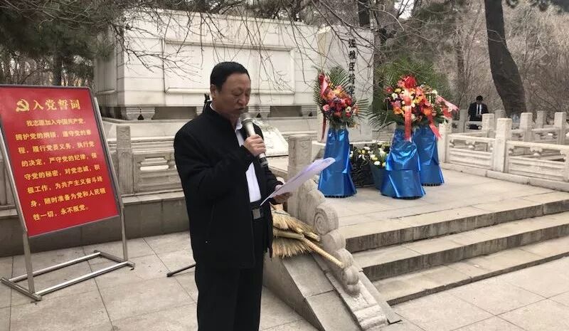 院党委宣传部部长王喻同志领誓,全体师生肃立在墓碑前庄严宣誓。那铿锵有力的声音表明了全体师生代表坚定的决心和信念。